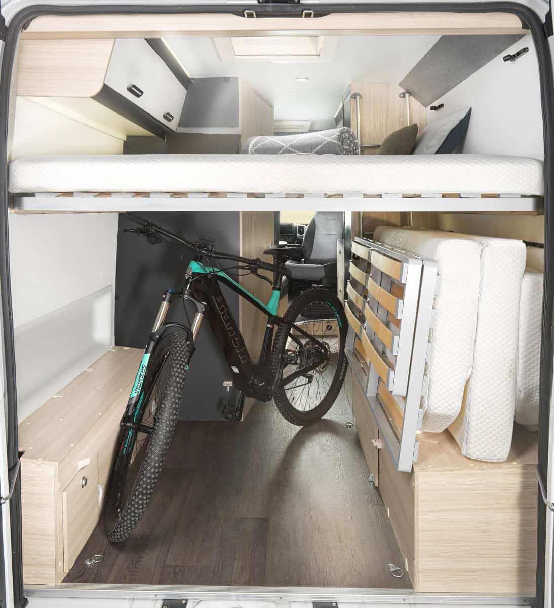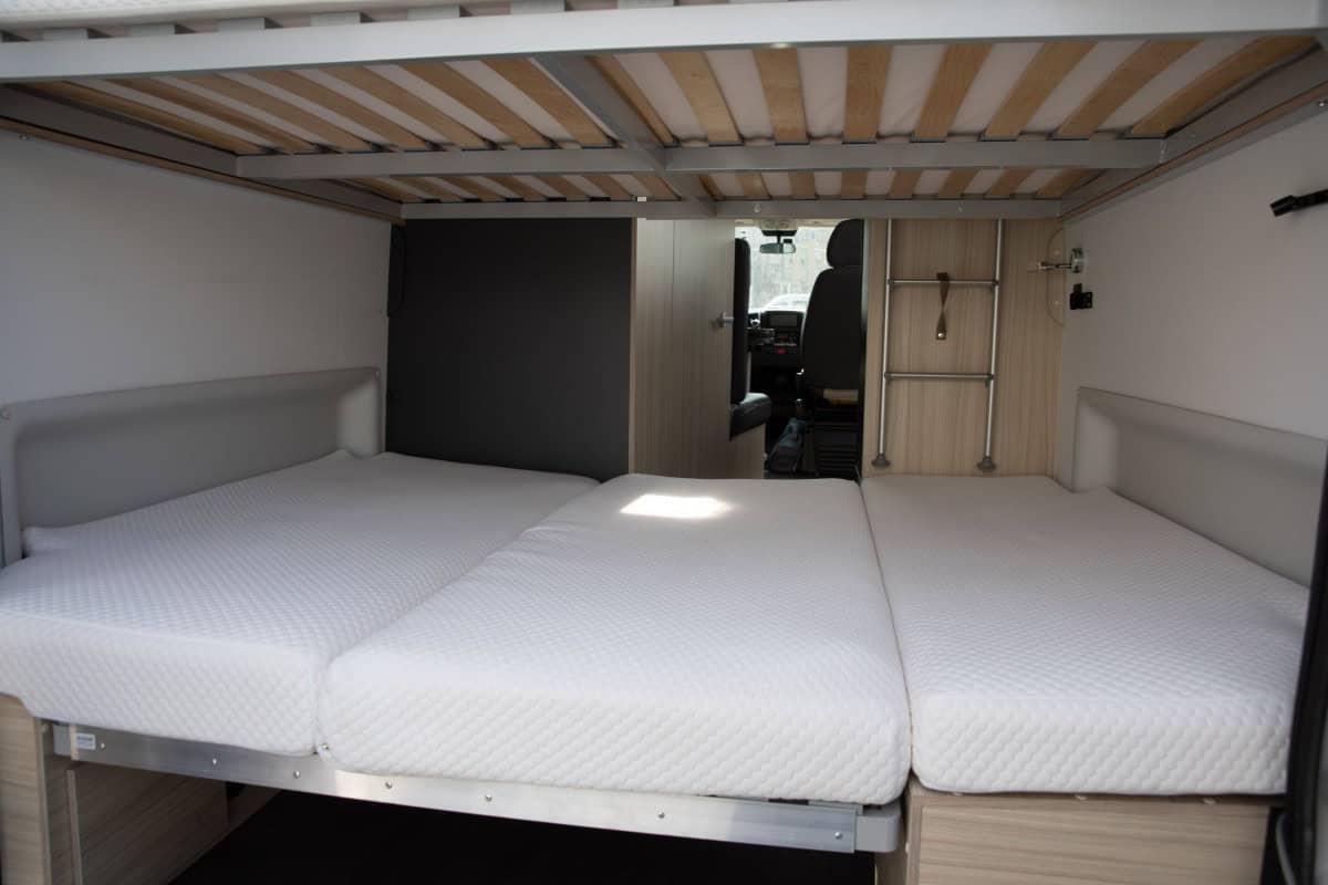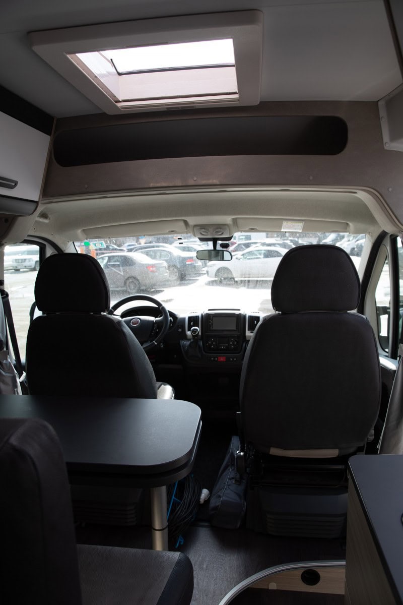 Аренда дома на колёсах SUN LIVING Family V60SP на базе Fiat Ducato в Москве — это возможность отправиться в комфортное путешествие или даже использовать автодом как практичный транспорт для поездок на работу: модель отлично показывает себя на трассе, разгоняясь до 160 км/ч (ограничение от производителя), и благодаря новой АКПП легко маневрирует в городском трафике, словно «зажигалочка». Дом на колёсах оснащён дизельным отоплением, что резко снижает зависимость от газа и увеличивает автономность, а большой компрессорный холодильник работает от 12 В, потребляя мало энергии и не требуя газа — газовый баллон (расположенный под нижним спальным местом) нужен только для готовки; особенность модели — две полноценные задние кровати вместо подъёмной крыши, что позволяет комфортно разместить четверых, а при необходимости верхнюю кровать можно снять, а нижнюю трансформировать, освободив пространство для крупногабаритных вещей или оборудования — идеальное сочетание практичности, проходимости и жилого комфорта для поездок по России и Европе.